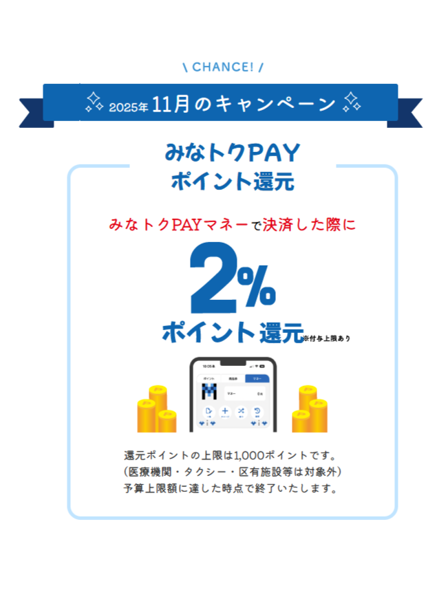 お知らせ 餃子バル TOP お知らせ 各種クーポン券をご利用ください 各種クーポン券をご利用ください 2025年10月4日 早割ーポン このクーポンは来月も発行予定です。 キャンペーンのご紹介 『スマイル商品券』(港区商店街)がご利用いただけます ※ 電子スマイル商品券のみでのご利用になります。紙商品券はご利用いただけません。 当店でLINEポイントカードがご利用いただけます ポイント到達時の特典は10%割引になります。いまならウェブからでも取得可能なカード取得ボーナスとして1ポイントをサービスで付与中です。